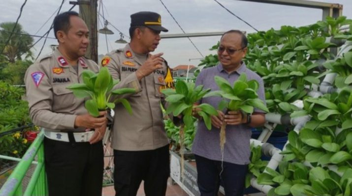 Sidoarjo | Kin.Co.Id – Polisi di Sidoarjo mendukung program ketahanan pangan dengan mengajak warga memanfaatkan lahan sempit untuk dijadikan lahan penanaman sayuran dengan sistem hidroponik.